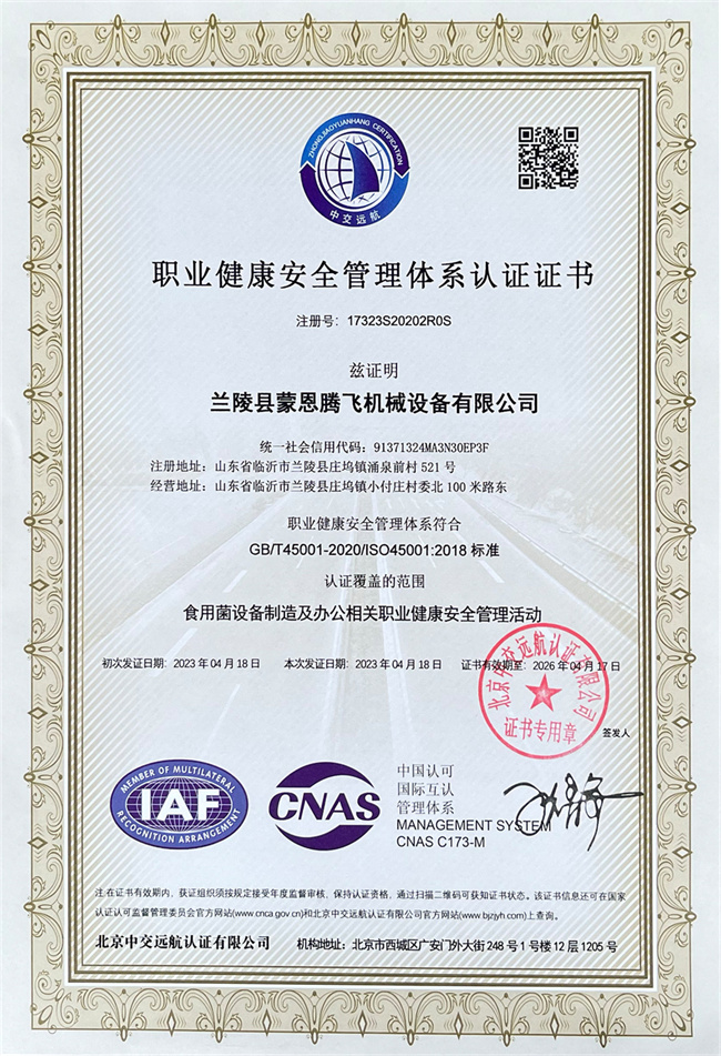 職業健康安全管理體系認證證書