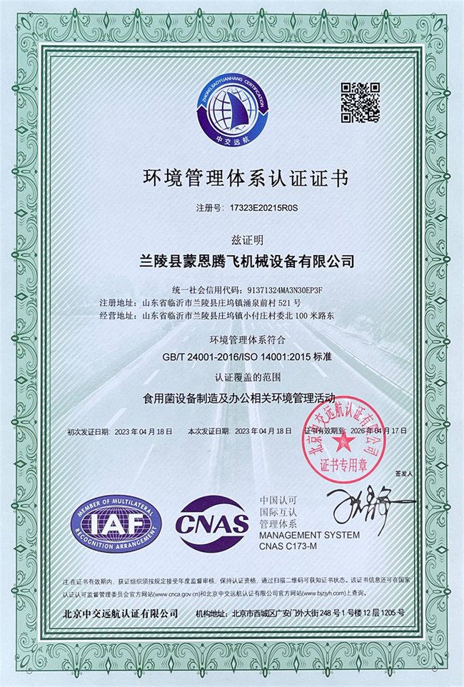 環境管理體系認證證書
